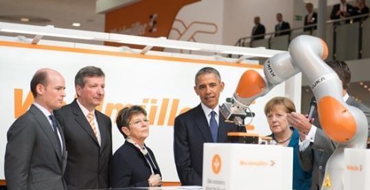 两国元首对魏德米勒展台的工业4.0 概念应用展台很感兴趣 。应用程序示例向他们展示了生产设备中央控制的前景 。这一展品结合了魏德米勒迄今为止实施过的所有工业4.0解决方案 。概念应用既展示了技术系统网络 ,也为客户提供了综合解决方案的处理 。工业4.0解决方案将被用于工业分析、云服务、能源管理、数字化、网络化及数据一致性 。Peter Köhler博士继而说道:“尤其是在网络应用方面对于美国而言是一个十分令人兴奋的领域 ,因为该国有着很高的软件能力水平 。在两位政要的参观期间 ,他们在不同的立场上深入了解了工业网络这个话题 。必一Bsports运动对能为他们的参观贡献一份力量而感到自豪 。”